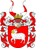 - ^ Names including: Badyński, Bancarewicz, Baniaszewicz, Bańkowski, Baran, Barancewicz, Baranowicz, Barzyk, Bądzyński, Beliński, Beniuszewicz, Bieliński, Bilański, Bojan, Bojanowicz, Bojanowski, Boniński, Borawski, Borcikowski, Borkowski, Borowski, Borukowski, Borwicz, Bujanowski, Bukar, Chabowski, Chądzeński, Chądzewski, Chociszewski, Chodecki, Chomętowski, Chrapuński, Chrościński, Chruściński, Chudzewski, Cieksiński, Cieśliński, Czarnochowski, Czechanowski, Czerniewski, Daczewski, Dalawski, Dalecki, Dalejowski, Daszewski, Dąbkowski, Dąbrowski, Derpowski, Doganowski, Dolecki, Domin, Dorożyński, Dorpowski, Drewnowski, Drowanowski, Drużbic, Drużdowicz, Dubkowski, Dziaskowski, Dzięgliński, Gałązka, Gałązkowski, Gałdecki, Gałecki, Gęś, Gigański, Girkont, Glinicki, Gładczyński, Głębocki, Godlewski, Golankowski, Gołczyński, Gołęski, Gostkowski, Gościmirski, Goślinowski, Gotsch, Górny, Grochowski, Gulczewski, Gumencki, Gumowski, Gzowski, Haliński, Hannowiecki, Hermanowski, Hoffman, Horyszewski, Humiecki, Humięcki, Igański, Ignański, Janicz, Janiszewski, Jankowski, Jarosławski, Jonasz, Junisic, Junosza, Junoszyc, Kalm-Podoski, Kamieniewski, Karkowski, Karnkowski, Karpołuski, Kawaniewski, Kienowski, Kiernoski, Kierowski, Kijowski, Kisieleński, Kisielewski, Kisieliński, Klewski, Kliński, Kola, Koluszkowski, Koła, Koło, Kołon, Kołowski, Komarnicki, Komiński, Koniński, Koniuski, Konopacki, Kormanicki, Koskowski, Kosmaczewski, Kostkowski, Kotulski, Kowalewski, Kowieski, Koza, Kozikowski, Krogulecki, Ksronowski, Kruszyński, Krzepczowski, Krzykowski, Kurdwanowski, Kurnicki, Kuronowski, Kuskowski, Kuszelewicz, Kuszewski, Kuszkowski, Kuszycki, Kuszyński, Kuturmański, Lelelewski, Lelowski, Lipicki, Lipnicki, Lochocki, Łatosek, Łempicki, Łochocki, Ługowski, Łypicki, Łypnicki, Malicki, Małynicz, Materni, Mierzyński, Mieszkowski, Międzobrocki, Międzobrodzki, Mokrzeski, Mokrzski, Niegorzewski, Niewski, Nijowski, Niowski, Niwski, Nowołoński, Odnodzki, Odznodzki, Ojrzanowski, Omieciński, Oparski, Opraski, Orłowski, Orpiszewski, Orwitowski, Osiński, Ostasiński, Ostrakowski, Ostrzakowski, Ostrzeniewski, Ostrzykowski, Ostrzyniewski, Oświeciński, Owada, Oyrzanowski, Peredko, Petraszewicz, Pętkowski, Piankowski, Pianowski, Piaskowski, Pieskowski, Pieszkowski, Pietrowski, Pijanowski, Piotroski, Piotrowin, Piotrowski, Plebański, Pławiński, Podolski, Podoski, Polchowski, Polikowski, Polkowski, Połchowski, Poniatowski, Przedojewski, Przedojowski, Przedzewski, Przedzowski, Przerownicki, Przędzowski, Przyrownicki, Pucdrowski, Puciłowski, Pulikowski, Puzdrowski, Rachański, Rachocki, Radosz, Radziejowski, Radziewanowski, Rahański, Ratajski, Ratowski, Rautenberg, Retowski, Rosperski, Rospierski, Rościszewski, Rotowicz, Rubel, Runowski, Rupeyko, Rupeykowicz, Ruszalski, Rzeński, Rzeszotarski, Rzeszotko, Saporowski, Segrowski, Sergowski, Sęp, Sianowski, Skiedrowski, Skoroszewski, Skoruszewski, Słuszkowski, Służkowski, Smłodowski, Smogorzewski, Sobański, Starzyński, Stefanowski, Stempowski, Stępkowski, Stępowski, Stkrwiński, Stoiński, Stopiński, Strkwiński, Struściński, Suchodolski, Sulerzyński, Sułocki, Sypiński, Szaniawski, Szarlej, Szarleński, Szarzeński, Szarzyński, Szetyński, Szymanowicz, Ścibor, Śliwiński, Świszulski, Tabacz, Tabasz, Trojan, Ubniewski, Ugniewski, Umiecki, Umieniecki, Uszaniecki, Wańtuch, Wdowiński, Widleński, Widliński, Wielecki, Wielicki, Winiecki, Wojsław, Wojsławski, Wojtycki, Wolski, Wostołcho, Woysław, Woysławski, Wsciślicki, Wściślicki, Wyrębowski, Wysokiński, Zaboj, Zagrzewski, Zaliwski, Załuski, Zamojski, Zamoytel, Zawadzki, Zawłocki, Zbożny, Zdrodowski, Zdrojewski, Zdrojowski, Żakowski, Żemoytel, Żomoytel, Żukowski