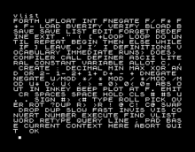 Its Forth was adapted to the disk-less tape-using home computer hardware by being able to save/load user "compiled vocabularies", instead of the usual numbered programming blocks used by diskette systems.
