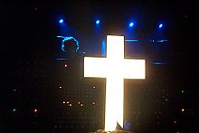 The Woman World Wide tour, promoting the release of the Woman studio album, marked another evolution of the live show to include more intricate stage lighting, employing minimal video effects and moving lighting fixtures, while remaining true to the refusal to rely on video or lighting effects as the primary focus of performance. The Woman World Wide tour would be the first tour not using "Valentine" as the center of the stage.[53] However, the signature cross motif was incorporated into the lighting suite.[53]