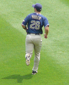 This injury ended Huber's catching career, and by the time he made his major league debut on 21 June 2005, he was a first baseman. He made his first career appearance in the outfield on 17 September 2007 against the Chicago White Sox.