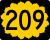 K-209 is a 2.455-mile-long (3.951 km) spur route that serves the city of Woodbine, which lies in east central Dickinson County on the west side of the Dickinson–Morris county line.[1][2] The highway begins at the northwest corner of the city at the intersection of Western Avenue and Eighth Street, which is also an intersection of orthogonal section line roads. K-209 follows the north city limit through a grade crossing with the heritage Abilene and Smoky Valley Railroad to the northeast corner of the city at Gillett Road. The highway crosses Lyon Creek, intersects Wolf Road, and curves away from and back to the east–west section line the route followed from Woodbine. At the east end of the curve, K-209 crosses the Dickinson–Morris county line, east of which the highway curves southeast to an orthogonal intersection with US-77 between Junction City and Herington.[138] The Kansas State Highway Commission approved a relocation of US-77 between Herington and Junction City in a January 6, 1960, resolution. The old course of US-77 passed along the west and north sides of Woodbine, crossed Lyon Creek, and turned north onto Wolf Road toward Junction City. The resolution stated the old course of US-77 from the northwest corner of Woodbine to Wolf Road would remain in the state highway system, and a new road would be constructed east from Wolf Road to the new course of US-77.[88] Those two segments together became K-209 after US-77's relocation was completed in 1961.[84][85][88]