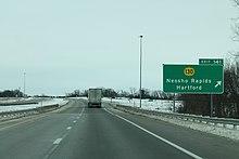 K-130 is a 7.818-mile-long (12.582 km) spur route that serves the cities of Hartford and Neosho Rapids in Lyon County. K-130's southern terminus is a continuation as Commercial Street at the Hartford City limits, and the northern terminus is at I-35 and US-50 north of the City of Neosho Rapids. K-130 was originally a section of K-57, but in a 1951 resolution, K-57 was realigned further south.[61] The U.S. Army Corps of Engineers began building the John Redmond Dam on June 18, 1959 and then in 1962 K-130 was realigned slightly between Hartford and to make room for the new reservoir. The dam went into service on November 17, 1964.[62][63]