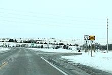 K-173 is a 0.650-mile-long (1.046 km) spur route that serves the unincorporated village of Densmore in southeastern Norton County.[1][2] The highway begins at an intersection of section line roads in the village. K-173 heads north to its end at K-9 between Edmond and Logan.[2] The village of Densmore had been served directly by K-9 until that highway was relocated to its present course between Edmond and Logan between 1946 and 1948.[105][106] The Kansas State Highway Commission accepted K-173 into the state highway system from Norton County through a May 23, 1956, certification of March 13, 1956, resolution that recognized the need to restore state highway access to the village of Densmore.[107]