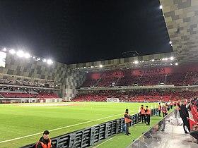 Partizani once again failed to challenge for the title the following season, as they could only manage a 4th-place finish, but they won the cup after beating Labinoti Elbasan 2–1 on aggregate in the final. They qualified for the Cup Winners' Cup and faced Swedish side Malmö FF who they narrowly lost 1–0 on aggregate following a 1–0 loss in Malmö and a goalless draw in Tiranë. The club won the 1980–81 National Championship ahead of Dinamo and KF Tirana, meaning they qualified for the European Cup where they faced Austrian side Austria Wien who they lost 3–2 on aggregate to following a disappointing 3–1[16] first leg away loss and a 1–0 home win.[17] The club had to wait until 1987 for their next trophy, which came in the shape of the National Championship which they won ahead of Flamurtari Vlorë. They faced Portuguese champions Benfica in an infamous first leg in Lisbon that saw Partizani lose 4–0 and end the game with 7 men as 4 players were sent off including goalkeeper and captain Perlat Musta.[18] Partizani were punished by UEFA for the incidents, and they were knocked out of the competition following a walkover victory for Benfica in what would have been the second leg, and they were also banned from Europe for 4 years. Partizani finished 9th in the 1987–88 campaign, which was their lowest ever finish in the league and they also missed out on the cup as they lost in the final to Flamurtari Vlorë. They somewhat bounced back the following season as they finished as runners up in the league, a feat that was repeated for 4 seasons in a row. They competed in the UEFA Cup in 1990, where they lost to Romanian side Universitatea Craiova, and they also won the cup in 1991 after beating Flamurtari in the final. In the Cup Winners' Cup the following season, they narrowly lost 1–0 to Dutch side Feyenoord, who they held to a 0–0 draw in Tiranë before losing the tie to a late goal in Rotterdam.