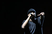 Lawrence "Kris" Parker (born August 20, 1965), better known by his stage names KRS-One (/ˌkeɪ ɑːr ɛs ˈwən/), an abbreviation of Knowledge Reigning Supreme Over Nearly Everyone, and Teacha, is an American rapper and occasional producer from Bronx, New York. He rose to prominence as part of the hip hop music group Boogie Down Productions, which he formed with DJ Scott La Rock in the mid-1980s. KRS-One is best known for his top hits, "Sound of da Police", "Love's Gonna Get'cha (Material Love)", and "My Philosophy", among others.[1] Boogie Down Productions received numerous awards and critical acclaim in their early years. Following the release of the group's debut album, Criminal Minded, fellow artist Scott La Rock was shot and killed, but KRS-One continued the group, effectively as a solo project. He began releasing records under his own name in 1993. He is politically active, having started the Stop the Violence Movement after Scott's death. He's also a vegan activist, expressed in songs such as "Beef".[2] He is widely considered an influence to many hip hop artists, including 2Pac and Eminem.