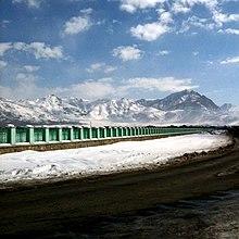 During the 1940s and 1950s, urbanization accelerated and the built-up area was increased to 68 km2 by 1962, an almost fourteen-fold increase compared to 1925.[47] Under the premiership of Mohammad Daoud Khan in the 1950s, foreign investment and development increased. In 1955, the Soviet Union forwarded $100 million in credit to Afghanistan, which financed public transportation, airports, a cement factory, mechanized bakery, a five-lane highway from Kabul to the Soviet border and dams, including the Salang Pass to the north of Kabul.[54] During the 1960s, Soviet-style microrayon housing estates were built, containing sixty blocks. The government also built many ministry buildings in the brutalist architecture style.[55]