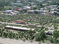 The city has experienced rapid urbanization with an increasing population. Many informal settlements have been built.[91] Since the late 2000s, numerous modern housing complexes have been built, many of which are gated and secured, to serve a growing Afghan middle class.[92] Some of these include the Aria City (in District 10) and Golden City (District 8).[93][94] Some complexes have been built out-of-town, such as the Omid-e-Sabz township (District 13), Qasaba/Khwaja Rawash township (District 15), and Sayed Jamaludin township (District 12).[95][96][97]