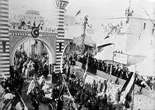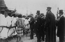 In his first visit to Istanbul in 1889, Wilhelm secured the sale of German-made rifles to the Ottoman Army.[37] Later on, he had his second political visit to the Ottoman Empire as a guest of Sultan Abdülhamid II. The Kaiser started his journey to the Ottoman Eyalets with Istanbul on 16 October 1898; then he went by yacht to Haifa on 25 October. After visiting Jerusalem and Bethlehem, the Kaiser went back to Jaffa to embark to Beirut, where he took the train passing Aley and Zahlé to reach Damascus on 7 November.[38] While visiting the Mausoleum of Saladin the following day, the Kaiser made a speech: