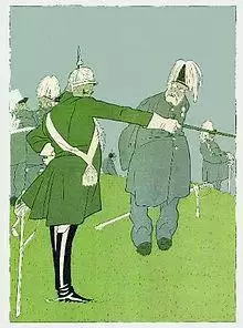 Wilhelm's most damaging personal blunder cost him much of his prestige and power and had a far greater impact in Germany than overseas.[49] The Daily Telegraph Affair of 1908 involved the publication in Germany of an interview with a British daily newspaper that included wild statements and diplomatically damaging remarks. Wilhelm had seen the interview as an opportunity to promote his views and ideas on Anglo-German friendship, but due to his emotional outbursts during the course of the interview, he ended up further alienating not only the British, but also the French, Russians, and Japanese. He implied, among other things, that the Germans cared nothing for the British; that the French and Russians had attempted to incite Germany to intervene in the Second Boer War; and that the German naval buildup was targeted against the Japanese, not Britain. One memorable quotation from the interview was, "You English are mad, mad, mad as March hares."[50] The effect in Germany was quite significant, with serious calls for his abdication. Wilhelm kept a very low profile for many months after the Daily Telegraph fiasco, but later exacted his revenge by forcing the resignation of the chancellor, Prince Bülow, who had abandoned the Emperor to public scorn by not having the transcript edited before its German publication.[51][52] The Daily Telegraph crisis deeply wounded Wilhelm's previously unimpaired self-confidence, and he soon suffered a severe bout of depression from which he never fully recovered. He lost much of the influence he had previously exercised in domestic and foreign policy.[53]