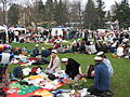 The height of Kaivopuisto's popularity is on Vappu day (1 May), immediately after the preceding Walpurgis Night celebrations in the city centre. On Vappu, Kaivopuisto is packed with tens of thousands of Helsinkians, who come to have a picnic with their friends and families. Fanciful costumes, loud music, and excessive consumption of alcoholic beverages is the routine for a Vappu picnic. It is customary for all attendants who have graduated from the Finnish matriculation exam to wear their student caps at the picnic. A yellowed student cap is taken as a sign of prestige.