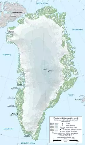 The extreme north of Greenland, Peary Land, is not covered by an ice sheet, because the air there is too dry to produce snow, which is essential in the production and maintenance of an ice sheet. If the Greenland ice sheet were to melt away completely, the world's sea level would rise by more than 7 m (23 ft).[84]