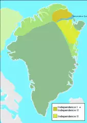 On 21 June 2009, Greenland gained self-rule with provisions for assuming responsibility for self-government of judicial affairs, policing, and natural resources. Also, Greenlanders were recognized as a separate people under international law.[69] Denmark maintains control of foreign affairs and defence matters. Denmark upholds the annual block grant of 3.2 billion Danish kroner, but as Greenland begins to collect revenues of its natural resources, the grant will gradually be diminished. This is generally considered to be a step toward eventual full independence from Denmark.[70] Greenlandic was declared the sole official language of Greenland at the historic ceremony.[2][4][71][72][73]