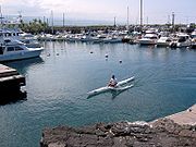 Several restored trails include about one mile of the Māmalahoa Trail.[10] It was built in the mid-19th century, and evolved over the years into the Hawaii Belt Road which encircles the entire island. The coastal trail is part of the Ala Kahakai National Historic Trail. The Honokōhau boat harbor provides a launching area for traditional canoes, fishing boats, Scuba diving and snorkeling tours of the area.