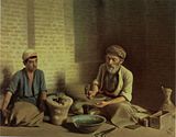 The tomb of Kamal-ol-Molk in Nishapur, Iran, in 1940. His mourners, especially family and closely related friends, marched his body next to the tomb of Sufi poet, Attar.