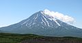 The highest volcano is Klyuchevskaya Sopka (4,750 m (15,584 ft)), the largest active volcano in the Northern Hemisphere.[9] Many have highly symmetrical cones and Kronotsky is viewed by volcanologists Robert and Barbara Decker as a prime candidate for the world's most beautiful volcano. Somewhat more accessible are the three volcanoes visible from Petropavlovsk-Kamchatsky: Koryaksky, Avachinsky, and Kozelsky. In the center of Kamchatka is the Valley of Geysers, which was partly destroyed by a massive mudslide in June 2007.[10]