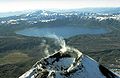 The lake-filled Akademia Nauk caldera, seen here from the north with Karymsky volcano in the foreground.
