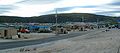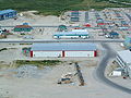 The town is served by the small Kangiqsualujjuaq Airport.[8] Access is usually by plane, although Kangiqsualujjuamiut occasionally travel to Kuujjuaq in winter by snowmobile and in summer by boat, a journey of approximately 160 km (99 mi) to the southwest. Journeys across the Torngat Mountains by snowmobile to the Labrador settlements Nain and Nachvak are rarely embarked upon these days, but were commonplace when dog teams were used. Cargo ships from Montreal deliver cumbersome supplies and equipment to the community every summer.