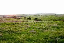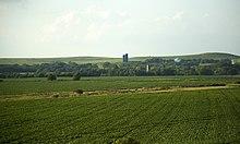 The western two-thirds of the state, lying in the great central plain of the United States, has a generally flat or undulating surface, while the eastern third has many hills and forests. The land gradually rises from east to west; its altitude ranges from 684 ft (208 m) along the Verdigris River at Coffeyville in Montgomery County, to 4,039 ft (1,231 m) at Mount Sunflower, 0.5 miles (0.80 kilometers) from the Colorado border, in Wallace County. It is a common misconception that Kansas is the flattest state in the nation—in 2003, a tongue-in-cheek study famously declared the state "flatter than a pancake".[26] In fact, Kansas has a maximum topographic relief of 3,360 ft (1,020 m),[27] making it the 23rd flattest U.S. state measured by maximum relief.[28]