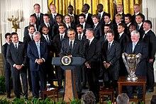 KC began the 2012 season with seven consecutive wins, in the process setting an MLS record for 335 minutes without allowing a shot on goal.[21] The team finished the regular season first in the East with an 18–7–9 record. KC was led by Graham Zusi, who delivered a league-leading 15 assists and was named finalist for 2012 MLS MVP,[22] Jimmy Nielsen, who notched a league leading 15 shutouts and was named 2012 MLS Goalkeeper of the Year, and Matt Besler, who was named MLS Defender of the Year. KC lost to the Houston Dynamo in the conference semifinals. KC won the 2012 U.S. Open Cup, defeating Seattle Sounders FC in the finals, to qualify for the 2013–14 CONCACAF Champions League.