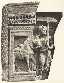 The description of Kanthaka is also widely observed in Buddhist art, such as carvings on stupas. The depiction of Siddhartha leaving Kapilavastu aboard Kanthaka found at the main stupa in Amaravathi is the oldest depiction currently existing. [4] Such depictions are also displayed in museums in London and Calcutta.