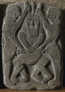 This relief carving was found at the temple-palace of Guzana. It depicts two heroes subduing a foe. Walters Art Museum, Baltimore.