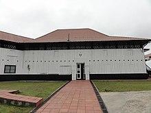 During the reign of Rajah Charles Brooke, a "Fort Kapit" was built in Kapit in 1880 to prevent the Iban from migrating up-river and attacking Orang Ulu settlements.[2] With the security provided by the fort, the area surrounding the fort was settled by Hoklo (Hokkien) Chinese in 1880, additional Hakka Chinese immigrants arrived in 1906, and Fuzhou Chinese in 1919. The Hokkiens worked as labourers while the Hakkas worked as farmers before venturing into businesses. Hock Leong Tieng Temple was built by the Chinese in 1889. Tai San Ten Association was formed in 1935 to serve the interests of Hokkiens and Hakkas.[2] In 1924, a peace treaty was signed between the Iban and the Orang Ulu people at Fort Kapit, thus ending the hostilities between the two tribes permanently.[3] In 1925, "Fort Kapit" was renamed as Fort Sylvia, after the wife of Rajah Vyner Brooke, Rani Sylvia Brooke.[2] The fort had withstood floods in 1887, 1934, 1961 and 1983.[3] On 28 January 1934, Kapit experienced the most severe flood in history with water level as high as 162 feet (49 m).[2]