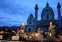 In 2004, representatives of the Municipality of Vienna, presented the project "Karlsplatz Art Space Presented".[5] The goals were, among other things a redesign of the park in terms of gardening, light and space and routing concept, called an improvement of the traffic situation for pedestrians and cyclists and the promotion of art projects on the Karlsplatz.