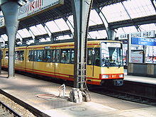 The Karlsruhe station is classified by Deutsche Bahn as a category 1 station.[1] It is served by Intercity-Express trains to Berlin, Hamburg, Dortmund and Basel, from Intercity trains to Stralsund, Cologne, Nuremberg, Munich and Konstanz and by TGV trains to Paris and Stuttgart. It is also served by Regional-Express services to Neustadt an der Weinstraße, Mainz, Stuttgart and Konstanz as well as local and S-Bahn services in the Karlsruhe region. According to DB the station receives about 60,000 passengers and visitors each day.[2]
