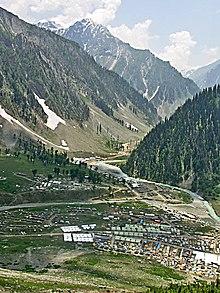 Smaller populations of ethnic Kashmiris also live in the remaining districts of both the Indian- and Pakistani-administered sides of Jammu and Kashmir. They can be found in the Chenab Valley of Indian-administered Kashmir, as well as in the Neelam District and Leepa Valley of Pakistani-administered Kashmir. Many ethnic Kashmiris have also settled throughout Pakistan, both historically and since the First Kashmir War of 1947–1948.[8] Ethnic Kashmiris migrated from Kashmir to the Punjab region during Dogra, Sikh and Afghan Durrani rule.[9][10][11][12] Most Kashmiris are Muslims; a small but historically notable community known as the Kashmiri Pandits are Hindus. [13]