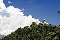 In the 10th century Mokshopaya or Moksopaya Shastra, a philosophical text on salvation for non-ascetics (moksa-upaya: 'means to release'), was written on the Pradyumna hill in Srinagar.[31][32] It has the form of a public sermon and claims human authorship and contains about 30,000 shloka's (making it longer than the Ramayana). The main part of the text forms a dialogue between Vashistha and Rama, interchanged with numerous short stories and anecdotes to illustrate the content.[33][34] This text was later (11th to the 14th century CE)[35] expanded and vedanticised, which resulted in the Yoga Vasistha.[36]