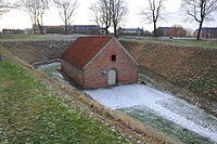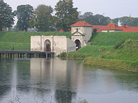 Since a fortified city needed secure supplies, including supplies of flour and rolled groats, in the event of siege, numerous windmills were constructed on the bastions.[4] In 1800, a total of 16 windmills were found on the ramparts of Copenhagen. The mill at Kastellet is the last which is still working, while another one, Lille Mølle at the Christianshavn Rampart, was transformed into a private home in 1915 and now survives as a historic house museum.