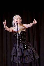 She performed at an annual event, Women in Voice, three times: in 2002, 2004 and 2005, where she shared the stage with Pearly Black, Margret RoadKnight, Jenny Morris and Chrissy Amphlett.[14] Miller-Heidke became known in Brisbane from these performances and her 2005 appearance in Women in Voice 14 won her the Helpmann Award for Best Performance in an Australian Contemporary Concert.[15] John Shand of The Sydney Morning Herald felt, "The young [Miller-Heidke] raised the bar with a witty rendition of David Byrne's 'Psycho Killer', part Peter Sellers and part mock-opera."[14]