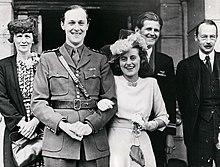The two had met and begun a friendship when she moved to England when her father was appointed American Ambassador. Despite objections from her mother, Kennedy and Lord Hartington reunited upon her return to England.[4] Rose especially rejected their relationship because she saw that their marriage would break the laws of the Roman Catholic Church by allowing Kathleen's children to be raised in the Church of England (Anglican Communion) rather than the Roman Catholic Church. Rose even tried to manipulate their relationship by keeping Kathleen away from Hartington and postponing a possible wedding. Regardless, Kathleen stubbornly married Hartington on May 6, 1944, in a civil ceremony at the Caxton Hall Register Office.[5][6] Kathleen's eldest brother Joseph P. Kennedy, Jr., an officer in the United States Navy, to whom she had grown close during the last year of his life, as he was serving in Britain in the United States Army Air Forces during the war, was the only member of the family to attend the ceremony. Her second eldest brother, Jack, was still hospitalized due to a back injury incurred on the motor torpedo patrol boat PT-109 in the South Pacific Ocean, while her younger brother, Robert F. Kennedy, was in naval training. On August 12, 1944, Joe Jr. was killed when his plane exploded over the English Channel during a top-secret bombing mission in Europe.[5]