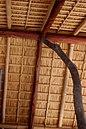 The Geppa-rō, also known as the “Moon-wave Tower,” has a view overlooking the pond. Although it is only fifteen by twenty-four feet in area, it is known for its spatial effect due to its exposed ceiling and roof structure. The roof is supported by four slanting beams that rise from the corners of the building with a ridge pole that is further supported by a curving king pole resting on a tie beam. This creates a unique spatial effect as the roof has a decorated underside that exposes the beams and rafters. [4]