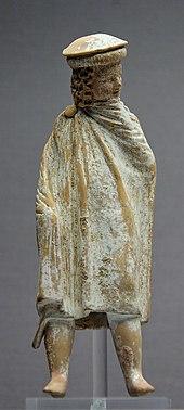 It was worn during the Hellenistic period but perhaps even before the time of Alexander the Great[2] and was later used as a protection against the sun by the poorer classes in Rome.[3]