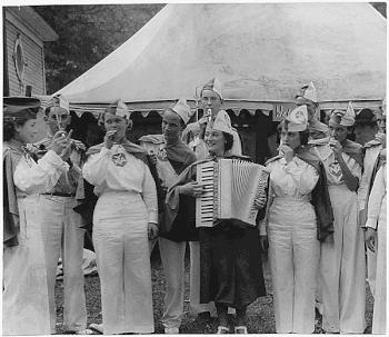 Red McKenzie played kazoo in a Mound City Blue Blowers 1929 film short.[10] The Mound City Blue Blowers had a number of hit kazoo records in the early 1920s featuring Dick Slevin on metal kazoo and Red McKenzie on comb and tissue paper (although McKenzie also played metal kazoo). The vocaphone, a kind of kazoo with a trombone-like tone, was occasionally featured in Paul Whiteman's Orchestra.[11] Trombonist-vocalist Jack Fulton played it on Whiteman's recording of Vilia (1931) and Frankie Trumbauer's Medley of Isham Jones Dance Hits (1932). The Mills Brothers vocal group originally started in vaudeville as a kazoo quartet, playing four-part harmony on kazoo with one brother accompanying them on guitar.[12]