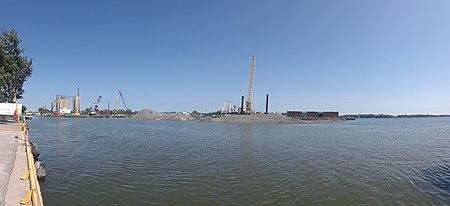 Early in its history the banks of the channel were lined with industrial enterprises, including a small shipyard, the Toronto Shipyard Company, which built vessels for the war effort.[7] The channel has always been dredged, to continue to allow navigation. In the 21st century, with its role as a cargo route over, the channel is only dredged to a depth of 5.8 metres (19 ft).[8] Toronto Life quoted Toronto harbour master Angus Armstrong's explanation that the current dredging efforts are aimed at "whatever is needed for the health of the river."