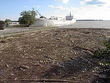 Another problem affecting the channel is floating debris that is washed down the Don. Composed largely of logs and dead wood, there is also an assortment of garbage that collects in the channel. The TRCA corrals this material with a boom across the channel. There can be significant flotsam where the Keating Channel enters Toronto Harbour, especially after a big storm.