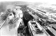 Canada's Federal cabinet published a tender for a railway swing bridge over the channel in 1896.[5] Construction began in 1900.[6]