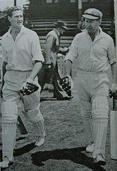 Miller finally made his breakthrough in cricket in 1939–40, when he was selected to make his Sheffield Shield debut, against South Australia at the Adelaide Oval.[43] He managed just four and seven, batting at number five in the order.[33][44][45] When Victoria fielded, Miller ran out his future Invincibles captain Don Bradman.[44][46] One of Miller's teammates was Percy Beames, who was also his manager at Vacuum Oil.[47] Miller scored 41 and 47 not out in his second match to hold his place. However, against New South Wales, Miller made a pair of 14s, having difficulties against leg spin.[47] In the return match against South Australia, Miller took the initiative against leg-spinner Clarrie Grimmett, aggressively advancing down the pitch and driving. Miller reached 108, his first century in Shield competition.[46][48][49] Apart from the century, Miller had a moderate season, ending with 298 runs at 29.80.[50]
