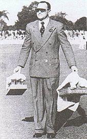 Miller had another difficult time against New South Wales, as the state side made 7/551 and Miller went wicketless.[202][204] When the servicemen batted, they faced an attack featuring leading leg spinner Bill O'Reilly and paceman Ray Lindwall, the fastest in Australia.[204][205][206] Miller was on 74 as Services limped to 9/171. With only one partner left, Miller attacked, scoring 31 of the last 33 runs to end unbeaten on 105, and earning plaudits among cricket pundits on Australian soil.[198][205][207] Former leading Test batsman Alan Kippax opined that "Australia has unearthed a new champion",[208] while O'Reilly said that Miller's century was "one of the best hundreds ever got against me".[208] Miller compiled 46 in the second innings as the Servicemen fell to another innings defeat. Miller finished the season with 4/49 against Queensland and a pair of fifties against Tasmania.[208][209]