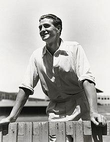 Keith Ross Miller, AM MBE (28 November 1919 – 11 October 2004) was an Australian Test cricketer and a Royal Australian Air Force pilot during World War II. Miller is widely regarded as Australia's greatest ever all-rounder.[1] His ability, irreverent manner and good looks made him a crowd favourite.[2] English journalist Ian Wooldridge called Miller "the golden boy" of cricket, leading to his being nicknamed "Nugget".[3] He "was more than a cricketer ... he embodied the idea that there was more to life than cricket".[4]