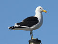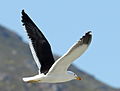 The kelp gull (Larus dominicanus), also known as the Dominican gull, is a gull that breeds on coasts and islands through much of the Southern Hemisphere. The nominate L. d. dominicanus is the subspecies found around South America, parts of Australia (where it overlaps with the Pacific gull), and New Zealand (where it is known as the black-backed gull, the southern black-backed gull, mollyhawk[2] – particularly the juveniles,[3] or by its Māori name karoro). L. d. vetula (known as the Cape gull) is a subspecies occurring around Southern Africa.