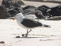 Subspecies L. d. dominicanus stealing a meal of shellfish from blackish oystercatchers in Bahía Inglesa, Chile