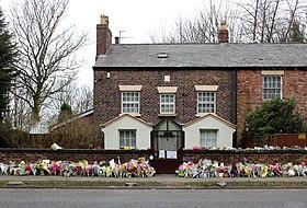 Dodd died aged 90 on 11 March 2018 at his home in Knotty Ash, the same home in which he was born and raised, soon after being hospitalised for six weeks with a chest infection.[53] He had been touring with his stand-up stage show up until the end of 2017. Numerous stars paid tribute, including fellow Liverpudlian Paul McCartney.[54] At his funeral on 28 March, which was led by the Bishop of Liverpool, Paul Bayes, thousands of fans joined the cortege which passed from his Knotty Ash home to Liverpool Cathedral. The service was attended by actors Ricky Tomlinson, Stephanie Cole and Miriam Margolyes, comedians Jimmy Tarbuck, Stan Boardman and Jimmy Cricket, and television executive Michael Grade. After the service, Dodd was laid to rest, alongside his mother and father, in a private burial service at Allerton Cemetery in Liverpool. Tickling sticks were placed on various statues around Liverpool in commemoration. At Liverpool Town Hall, St George's Hall, the Cunard Building and Liverpool Central Library, flags were lowered to pay respect.[55]