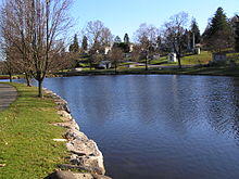 Kensico Cemetery, located in Valhalla, Westchester County, New York was founded in 1889, when many New York City cemeteries were becoming full, and rural cemeteries were being created near the railroads that served the city. Initially 250 acres (1.0 km2), it was expanded to 600 acres (2.4 km²) in 1905, but reduced to 461 acres (1.9 km²) in 1912, when a portion was sold to the neighboring Gate of Heaven Cemetery. Several baseball players are buried in this cemetery.
