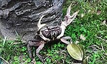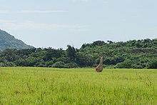 Eluanbi Park or Oluanpi Park (鹅鑾鼻公園) is located at Cape Eluanbi.[6] Nature reserves such as the Longkeng Ecological Protection Area (龍坑生態保護區)[7] protecting coral reefs and virgin forest of Banana Bay and Hengchun Peninsula.[8] 26 species of land crabs inhabit in the area and which is the highest diversity of terrestrial crabs in single areas in the world.[9] 34 species of terrestrial mammals including 5 locally extinct such as Formosan clouded leopard, and 4 introduced such as water buffalo, have been recorded.[10] Formosan sika deer which became extinct in wild in 1969, was first reintroduced into Kenting National Park in 1994.[11] Aside from sika deer, 6 species of terrestrial mammals were once thought to be extinct in the area, while critically endangered Chinese pangolin were rediscovered a decade after.[12]