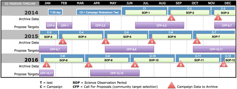 - ^ Barclay, Thomas; Dotson, Jessie (May 29, 2014). "K2 Campaign 1 (May 30, 2014 – August 21, 2014)". NASA. Retrieved April 4, 2015.