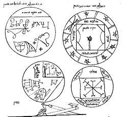 A Hebrew text survives in two versions, one kept at the British Library, on a parchment manuscript, separated in BL Oriental MSS 6360 and 14759. The BL manuscript was dated to the 16th century by its first editor Greenup (1912), but is now thought to be somewhat younger, dating to the 17th or 18th century.[3] The discovery of a second Hebrew text in the library of Samuel H. Gollancz was published by his son Hermann Gollancz in 1903, who also published a facsimile edition in 1914.[4] Gollancz' manuscript had been copied in Amsterdam, in Sephardic cursive script, and is less legible than the BL text. The Hebrew text is not considered the original. It is rather a late Jewish adaptation of a Latin or Italian Clavicula text. The BL manuscript is probably the archetype of the Hebrew translation, and Gollancz' manuscript a copy of the BL one.[3]