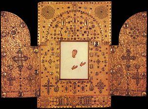 An Iconic 12th-century triptych Icon of the Mother of God created at the Khakhuli Monastery is one of Georgia's finest examples of medieval Georgian goldsmithery, and is now located in the Art Museum of Georgia. Also, there are several small chapels around the Church, within the circuit wall, one of which dates from the 10th century.